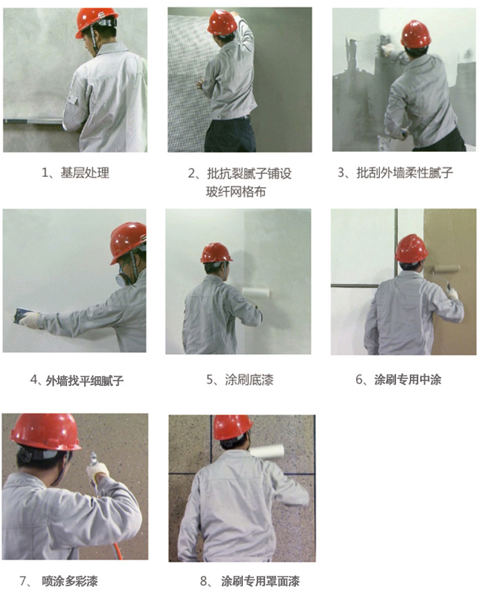 ●基层处理:进行基层检查处理墙体裂缝及空鼓处;pH≤10,水分≤10%