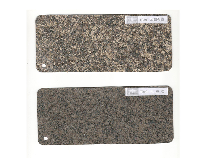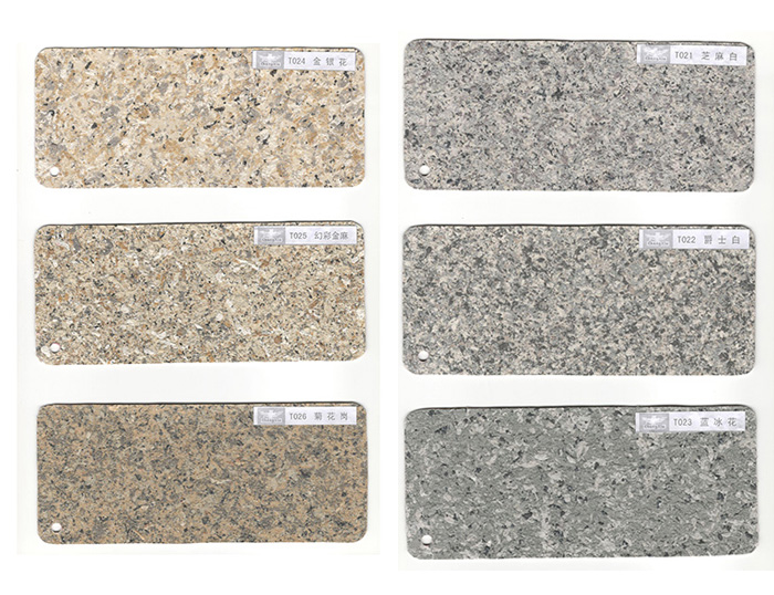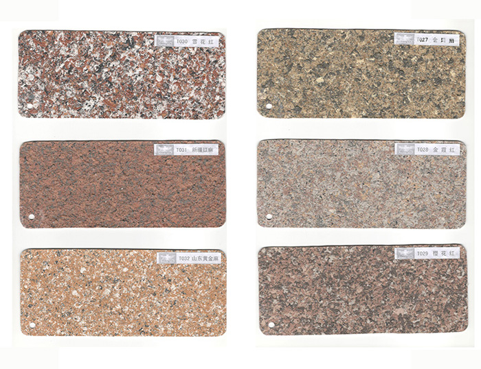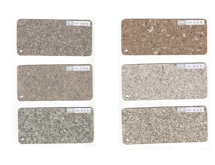 长信牌水包砂多彩漆是仿照火烧面/荔枝面花岗岩石材效果的优质产品。以纯丙烯酸乳液为基料,通过水包水的微胶化造粒工艺,将不同色粒及石英砂包覆成为均匀稳定的分散相和连续相的两相稳定体系。该工艺超越了传统的水性涂料技术和工艺,同时具有较好的耐候保色性和覆盖墙体细微裂纹的功效。经多彩漆专用喷枪一枪喷出即可获得多色点状纹理,可充分展现天然花岗岩石材的色彩多样外观和效果,防护耐久性堪比石材,而且涂膜十分轻质和柔韧,具有突出性价比、水性环保、质量可靠、持久耐候、逼真的花岩石原貌等特点。